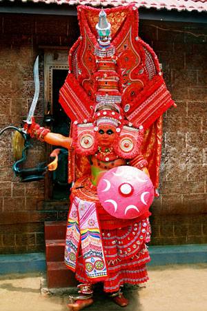 വേഷവിധാനങ്ങൾ: വമ്പനായ ഒരു പോരാളിയുടെ ഗാംഭീര്യം ഈ വേഷത്തിലുണ്ട്. മുഖത്ത് രൗദ്രഭാവം സ്ഫുരിക്കുന്ന മുഖത്തെഴുത്തും, തലയിൽ വലിയ പൊതച്ച മുടിയുമാണ് ഈ തെയ്യത്തിനുള്ളത്. കയ്യിൽ വലിയ വാളും വട്ടപ്പലിശയും (വട്ടത്തിലുള്ള പരിച) ഉണ്ടാകും.